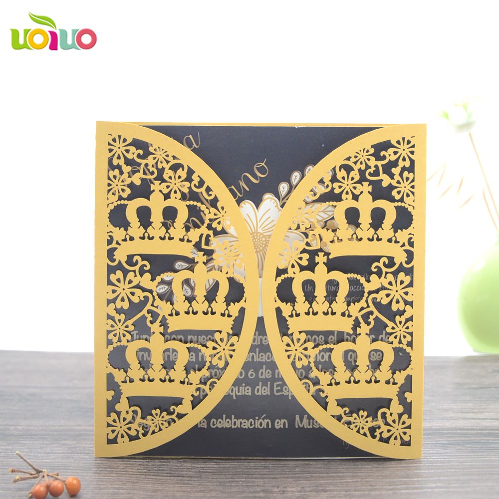 Hot Best Sell Laser Cut Royal Wedding Invitation Cards Crown Lace
