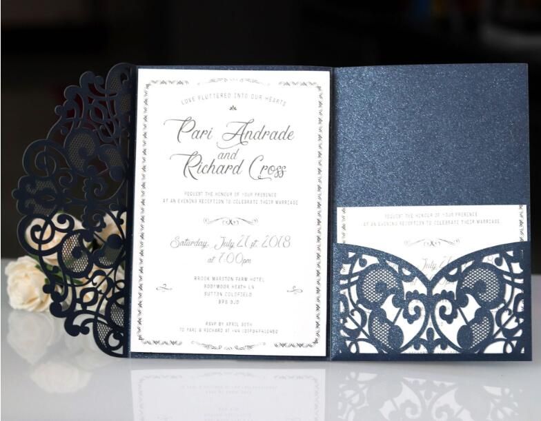 Hot Sale Navy Blue Laser Cut Wedding Invitations Cards 2018 New